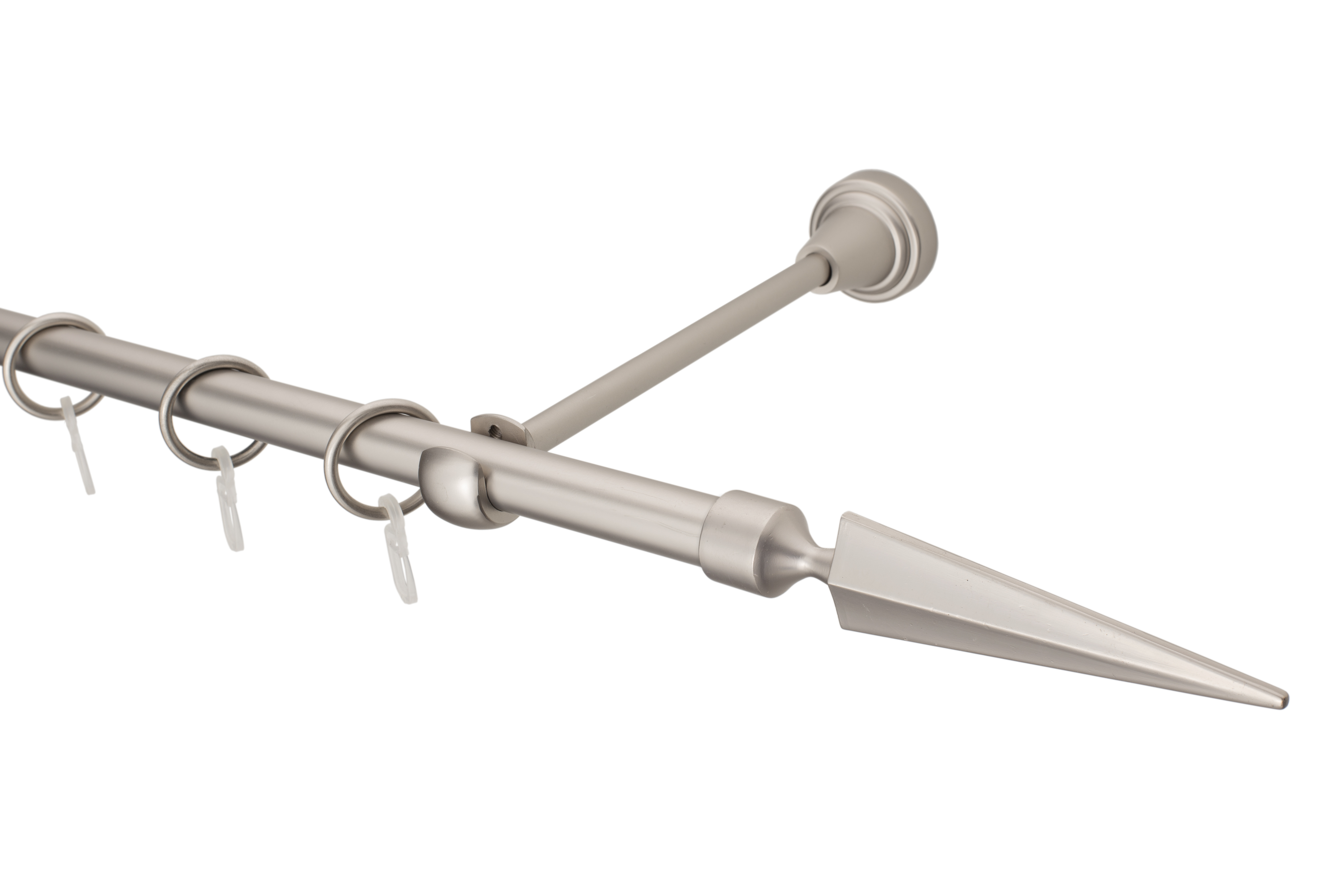 Карниз «Стрела» 16мм - интересный вариант крепления штор выполненный в классическом стиле. Высокопрочный металл штанги обработан безопасным составом, благодаря которому устойчив к естественному механическому износу и коррозии. Готов подчеркнуть красоту занавесок и прекрасно впишется в любой дизайн интерьера помещения, от классического до современного.