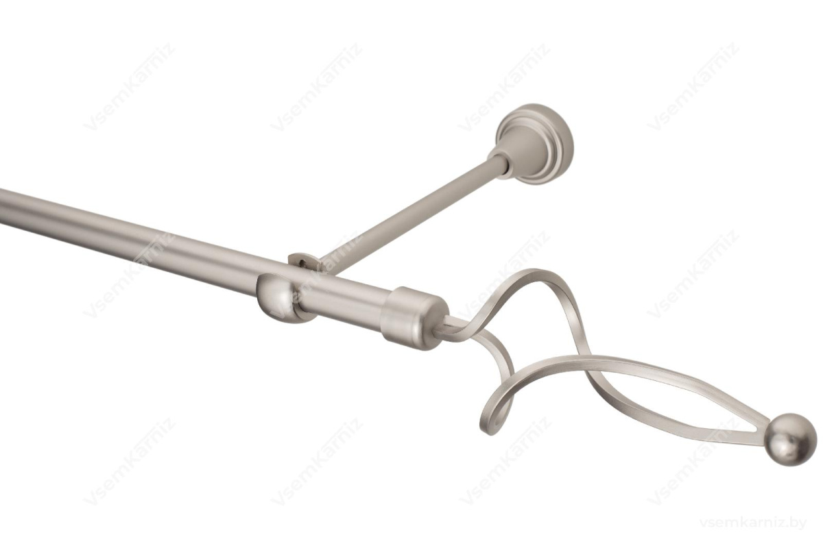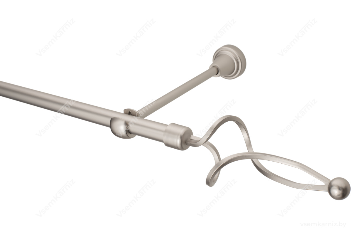 Карниз «Волна» 16мм доступен в цвете "Хром матовый" и "Антик". Длина штанги может быть выбрана от 140 см до 400 см. Комплектуется самой штангой, двумя или тремя кронштейнами (в зависимости от длины), парой наконечников, крепежом для кронштейна. Дополнительно может комплектоваться кольцами (в том числе и бесшумными) и зажимами для штор, а также соединителем.