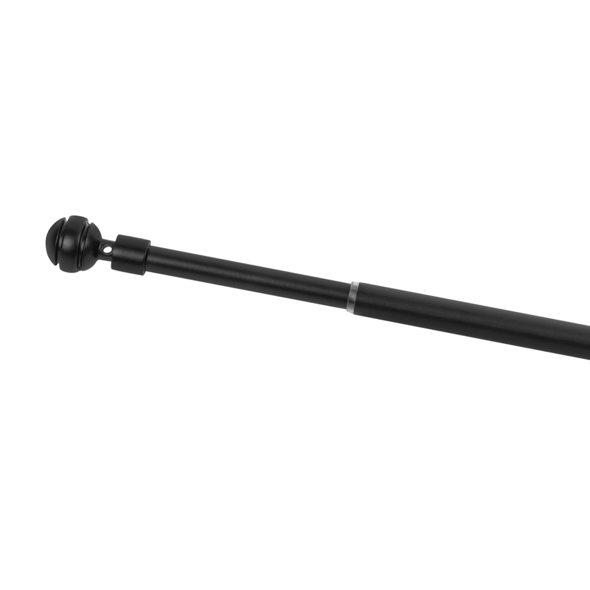 Мини-карнизы (кафе) «Шар рифлёный» Черный отлично подойдут для кухни, они не занимают лишнего места, не перегружают интерьер. Высококачественный металл карниза обработан специальным Черныйоррозийным составом, что позволяет ему служить долгие годы. Мини-карнизы кафе «Шар рифлёный» можно сочетать с рулонными шторами или жалюзи на окнах, чтобы пользоваться ими в темное время суток в комплексе. Длина штанги может быть выбрана от 80 см до 120 см.