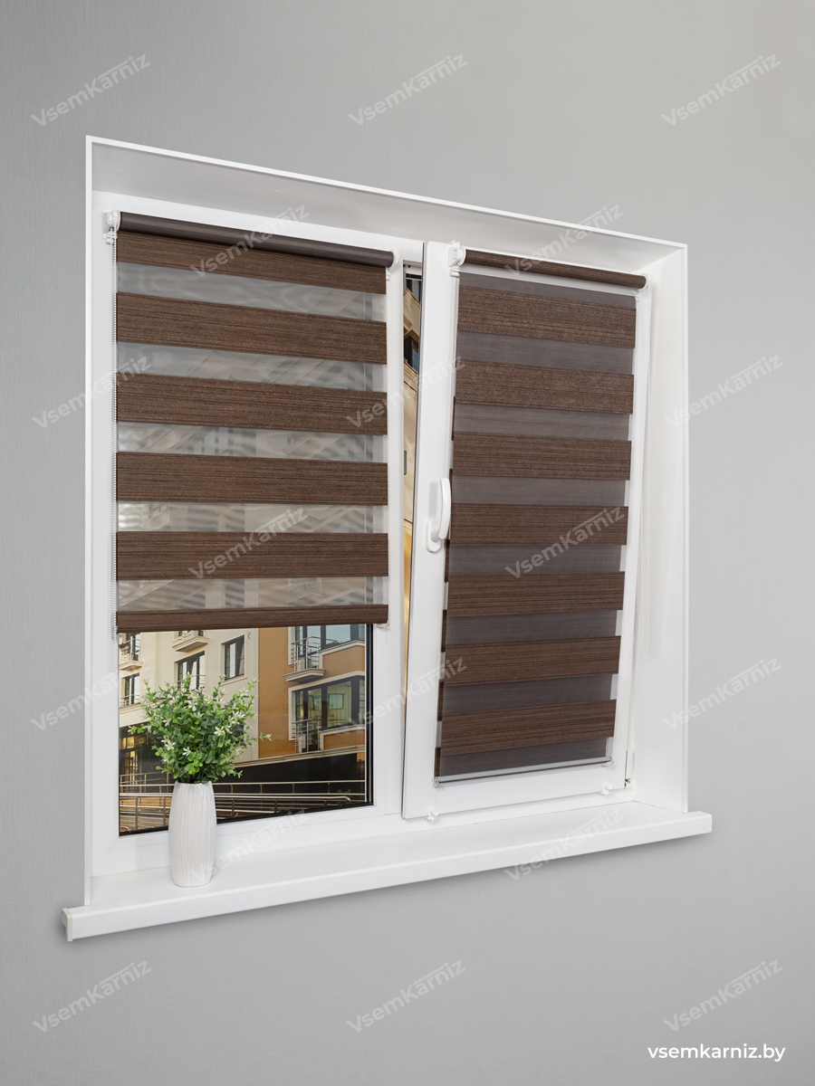 Рулонная штора День-Ночь «Марсель 06» с полосами темно-коричневого цвета «под дерево», это практичная и красивая система светозащиты, которая позволяет регулировать уровень освещенности в любое время суток. Рулонная штора День-Ночь «Марсель 06» комплектуется цепочным механизмом и крепежными элементами, в том числе и клейкой лентой для монтажа без сверления, кронштейнами для откидной створки, инструкцией монтажа и саморезами в случае заказа рольшторы с шириной полотна свыше 110 см. На сайте присутствует обширный диапазон размеров рольштор для заказа шириной от 38 до 220 см, длиной от 160 до 185 см.