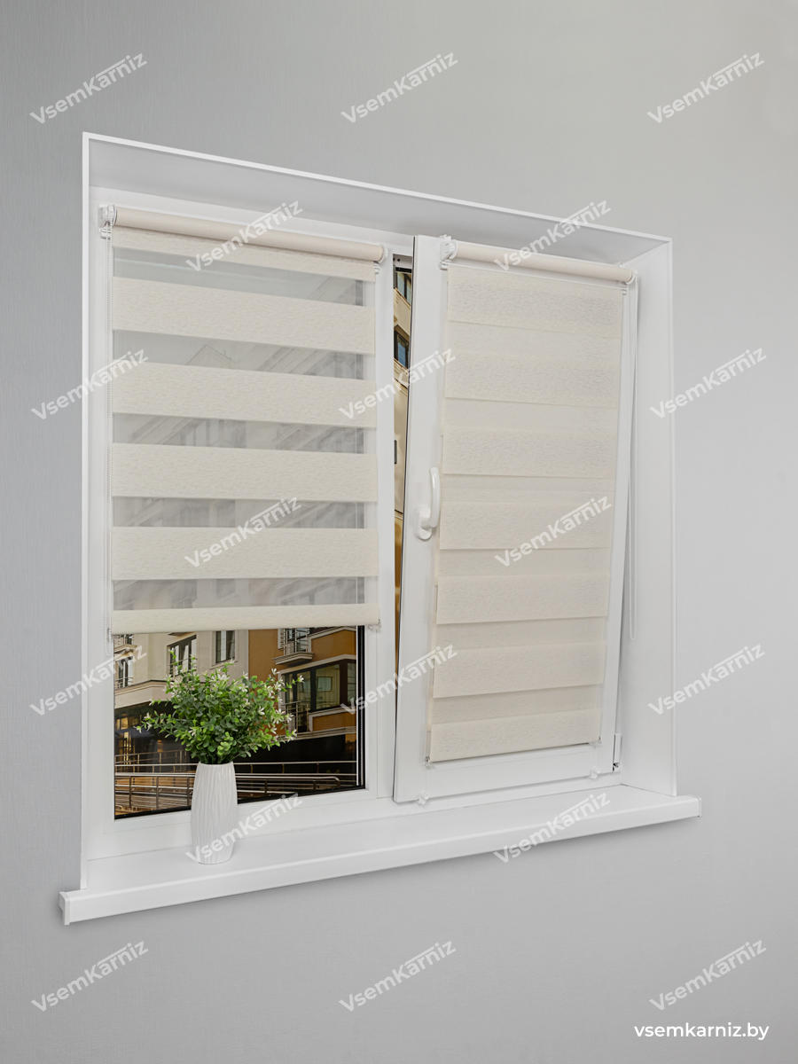 Рулонная штора День-Ночь «Сити 01» с полосами бежевого цвета многофункциональная и практичная система светозащиты, которая не требует особого ухода. Рулонная штора День-Ночь «Сити 01» комплектуется цепочным механизмом и крепежными элементами, в том числе и клейкой лентой для монтажа без сверления, в случае заказа рольшторы с шириной полотна менее 110 см, саморезами, кронштейнами для откидной створки и инструкцией монтажа. Диапазон размеров рольштор для заказа - длиной от 160 до 185 см и шириной от 38 до 220 см.