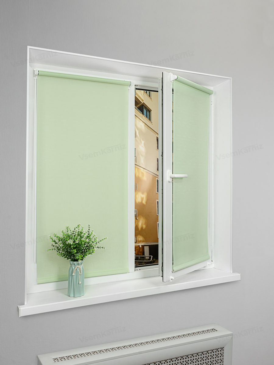 Рулонная штора «Лайт 08» фисташкового цвета со светопроницаемостью 60% это практичная и красивая система светозащиты, которая позволяет регулировать уровень освещенности в любое время суток. Рулонная штора коллекции «Лайт» комплектуется цепочным механизмом и крепежными элементами, в том числе и клейкой лентой для монтажа без сверления, кронштейнами для откидной створки и инструкцией монтажа.